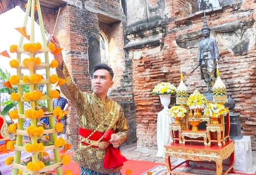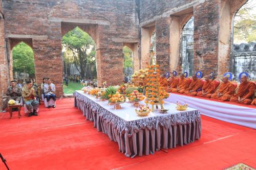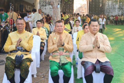 นายวีรพงศ์ ฤทธิ์รอด ผู้ว่าราชการจังหวัดลพบุรี นำพสกนิกรชาวจังหวัดลพบุรี พร้อมใจกันนุ่งโจง ห่มสไบ แต่งไทย อย่างสวยสดงดงาม ร่วมพิธีทำบุญตักบาตรข้าวสารอาหารแห้ง ถวายแด่พระสงฆ์ จำนวน 60 รูป โดยได้รับความเมตตาจาก ท่านเจ้าคุณพระวชิรจริยาภรณ์ รองเจ้าคณะจังหวัดลพบุรี เจ้าอาวาสวัดเสาธงทอง พระอารามหลวง เป็นประธานฝ่ายสงฆ์ เดินออกรับบิณฑบาต เนื่องในวันคล้ายวันพระราชสมภพ สมเด็จพระนารายณ์มหาราช ปรจำปี 2569 เพื่อเป็นความเป็นสิริมงคลแก่ตนเอง และเมืองลพบุรี พร้อมทั้งร่วมกัน ประกอบพิธีสงฆ์ และบวงสรวง ดวงพระวิญญาณสมเด็จพระนารายณ์มหาราช ณ พระที่นั่งดุสิตสวรรค์ธัญญมหาปราสาท ภายในพระนารายณ์ราชนิเวศน์