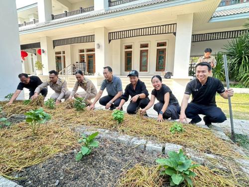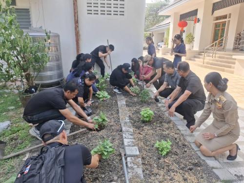 โดยมี นายสุทัศน์ หลีกพาล ผู้นำศูนย์จิตอาสาพัฒนาชุมชนจังหวัดลพบุรี พร้อมทีมงาน ร่วมปรับพื้นที่การปลูกผัก เพื่อสามารถให้จวนผู้ว่าราชการจังหวัดเป็นคลังอาหาร