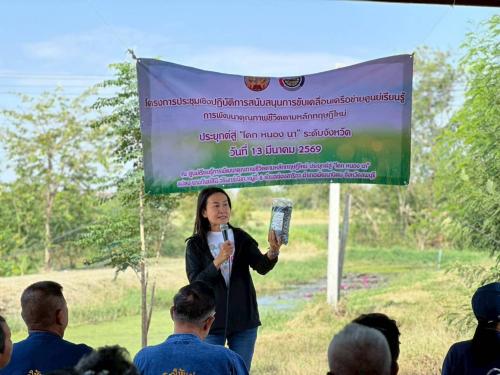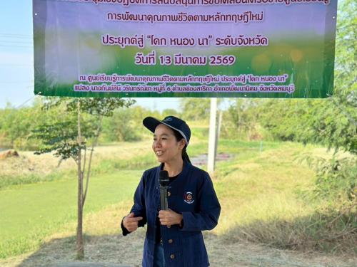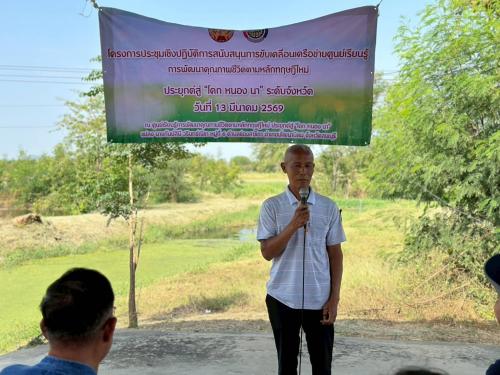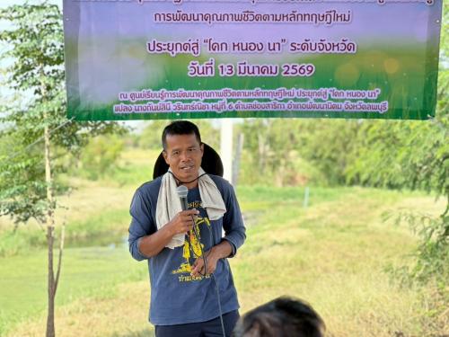 วันที่ 13 มีนาคม 2569 เวลา 08.30 น. ณ ศูนย์เรียนรู้การพัฒนาคุณภาพชีวิตตามหลักทฤษฎีใหม่ ประยุกต์สู่ “โคก หนอง นา” แปลง นางกันย์สินี วรินทร์ณิชา หมู่ที่ 6 ตำบลช่องสาริกา อำเภอพัฒนานิคม จังหวัดลพบุรี
